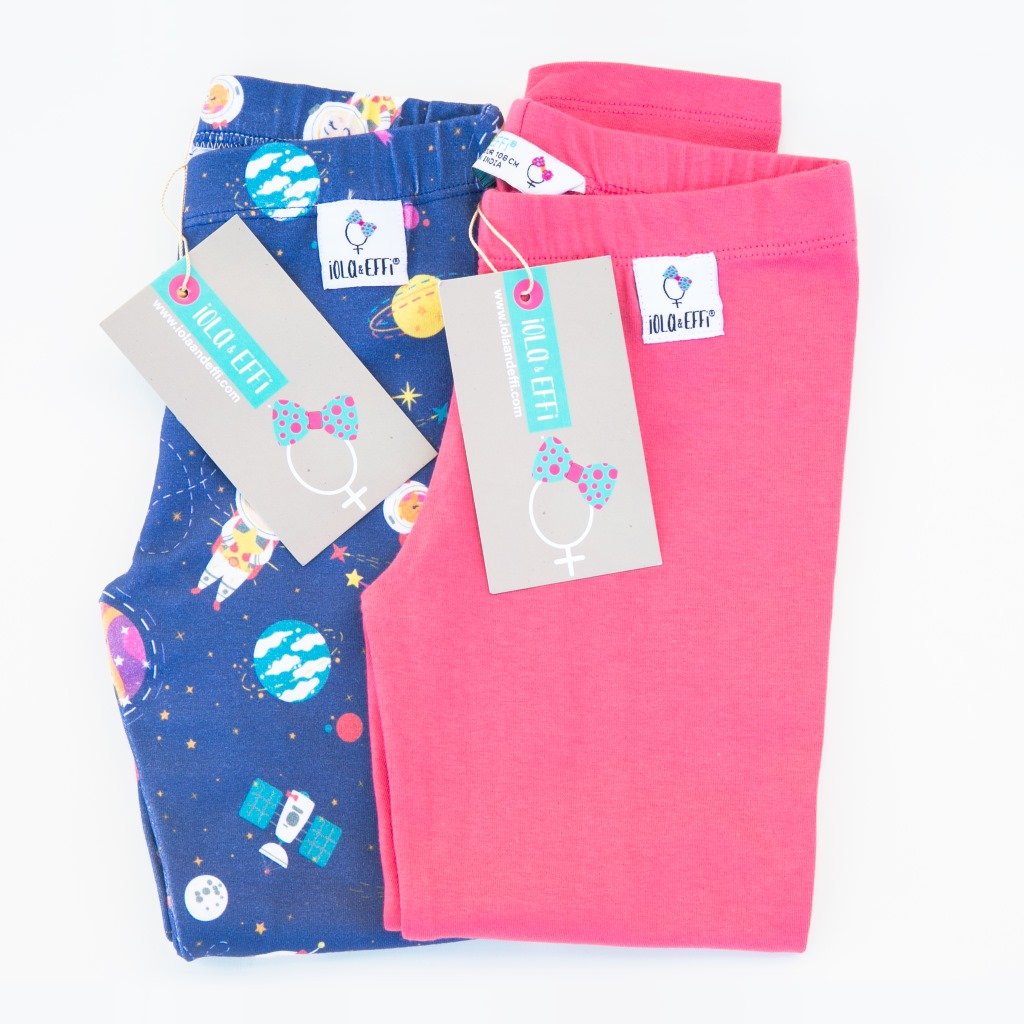 Cotton Leggins for girls that come in a pack of two (1 space pattern print and 1 plain).