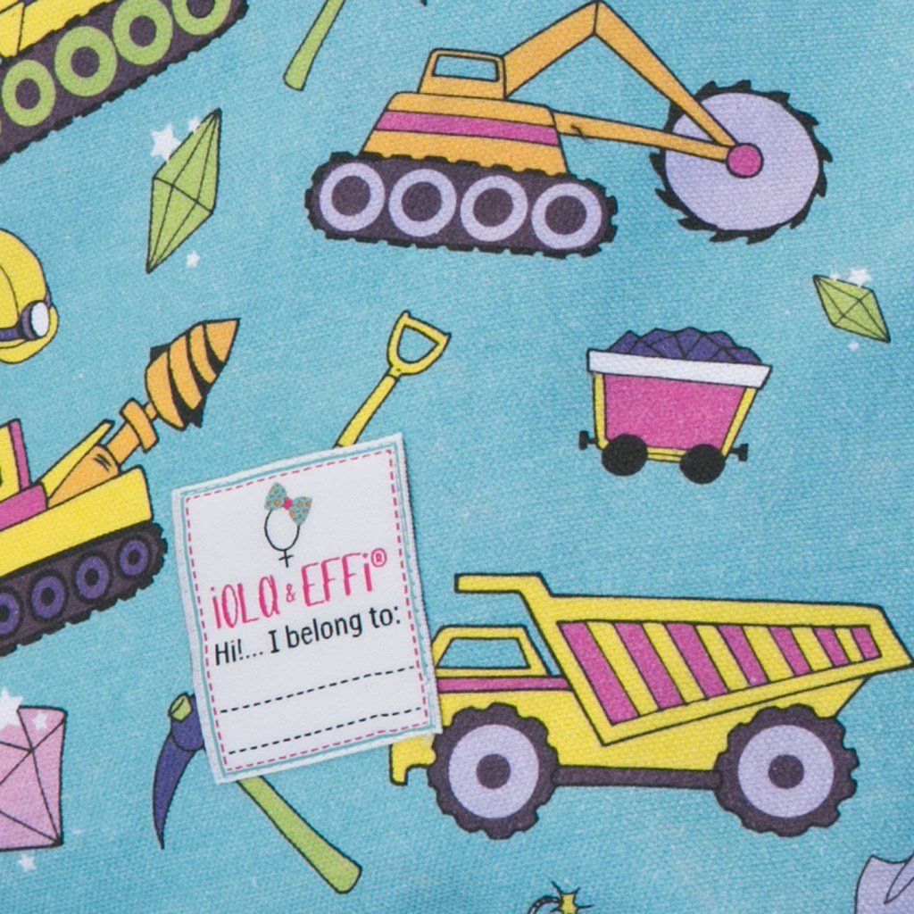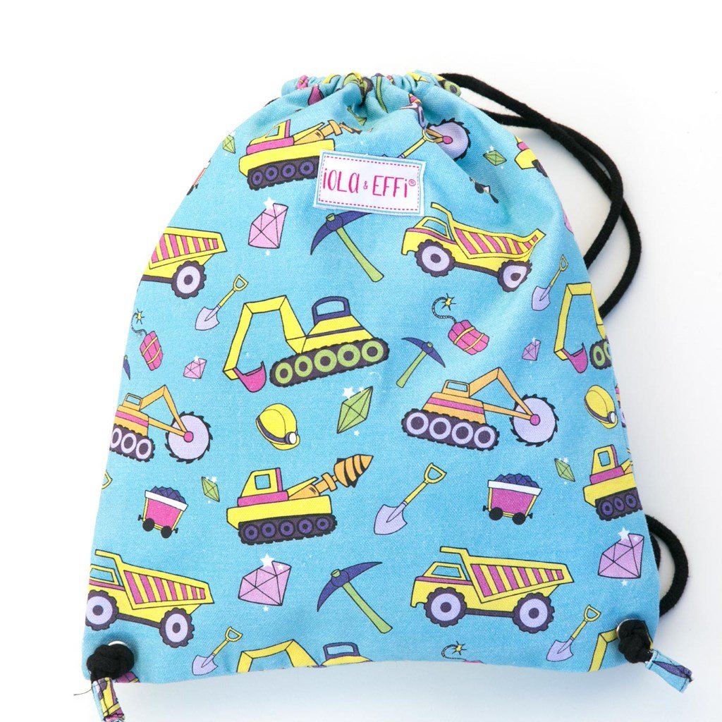 100% Cotton canvas mining theme drawstring bag with water-resistant treatment, allover digital printing, and a name label, so it always comes back to you!